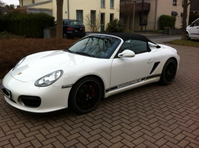 Porsche 987 Boxster Spyder, Bj. 11/2010, 320 PS, weiß, Alcantara/Leder anthrazit, 34.000 km, Schalter, Sportauspuff, Sport-Chrono, Klimaautom., 1 Hd. | ||